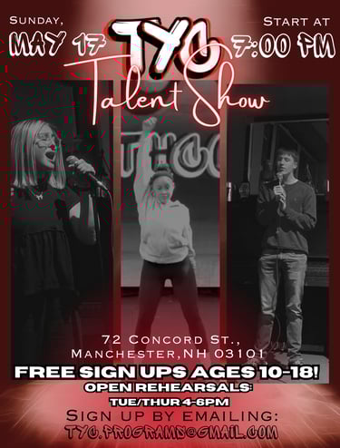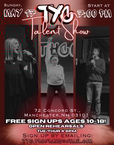 Interested in performing? Email TYC.Programs@gmail.com, open rehearsals are every Tuesday and Thursday from 4pm-6pm.