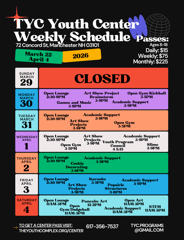 A center pass gives access to all programs being ran out of the building, as well as access to the Youth Lounge.